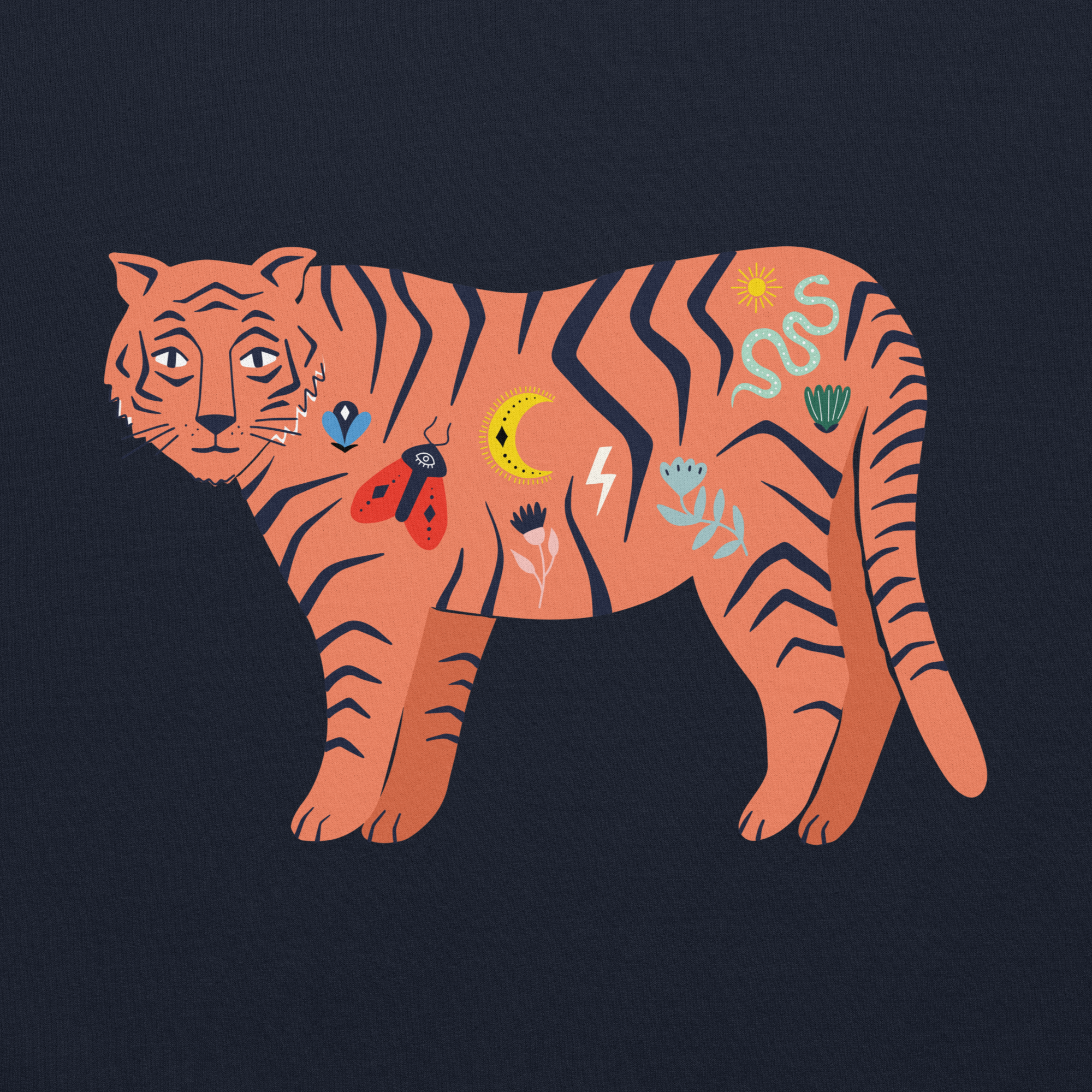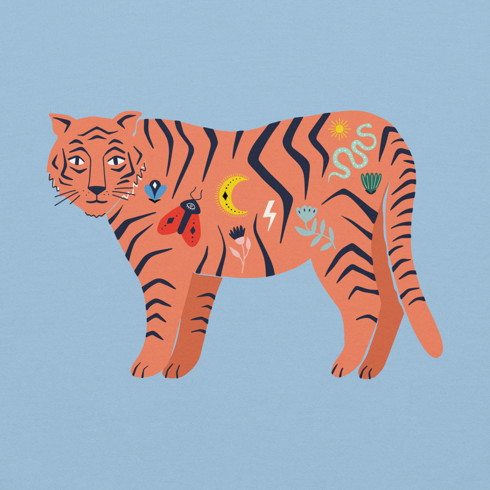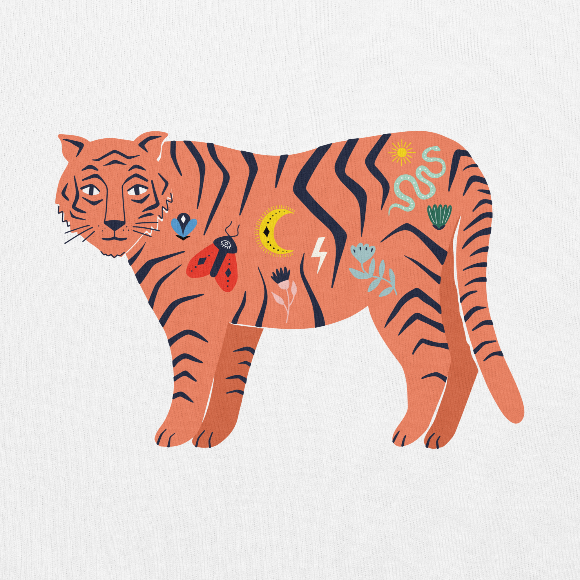 Big cat energy, but make it cozy. The Story Stripe Tiger hoodie features our illustrated tiger covered in tiny doodle details: lightning bolts, moons, flowers and more, like tattoos from a graphic novel. Soft fleece on the inside, bold art on the outside, it’s made for coffee runs, late night walks, and every “I’m quietly powerful” moment in between.