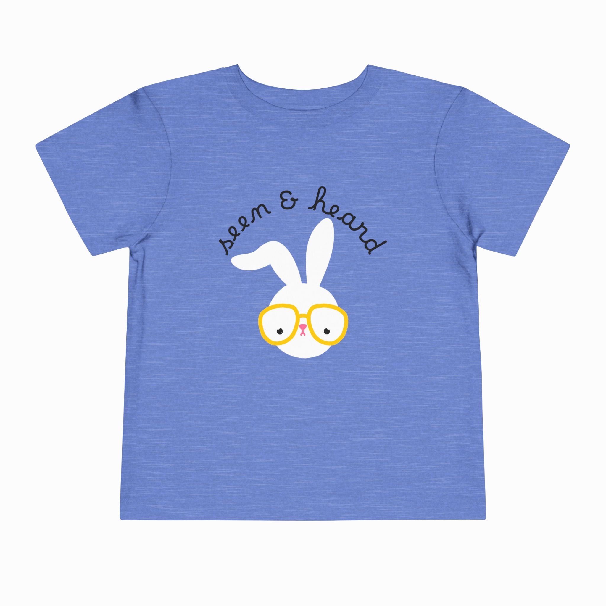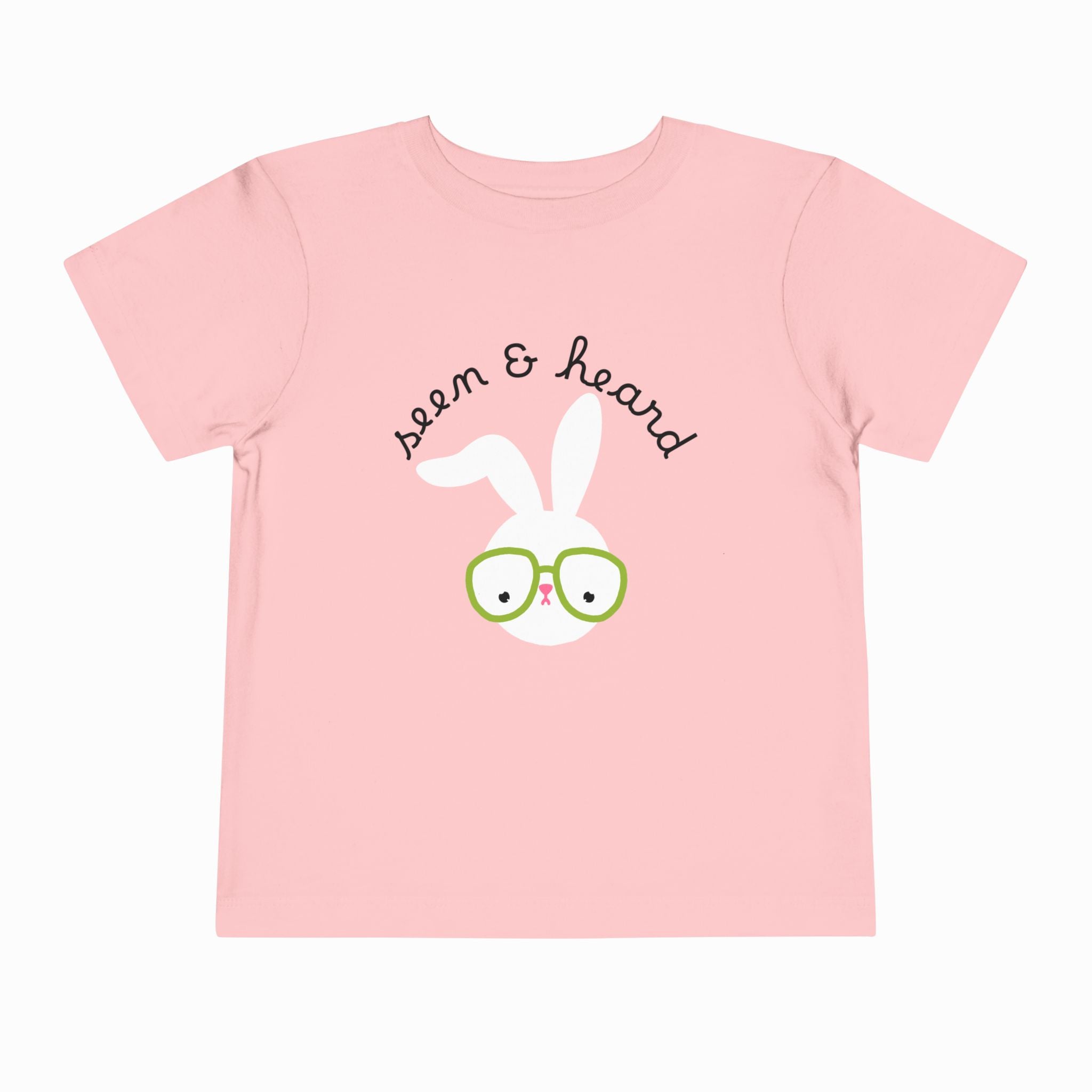 Let them shine in our Seen & Heard Bunny T-Shirt, designed for toddlers learning to speak up and share their world. This playful tee features an adorable bunny illustration paired with the empowering tagline “seen & heard,” reminding little ones that their voices matter. Made from soft, breathable cotton, it keeps kids comfy on every adventure, from playground chatter to quiet story time. Perfect for gifting, everyday wear, or making a statement that kids deserve to be listened to.