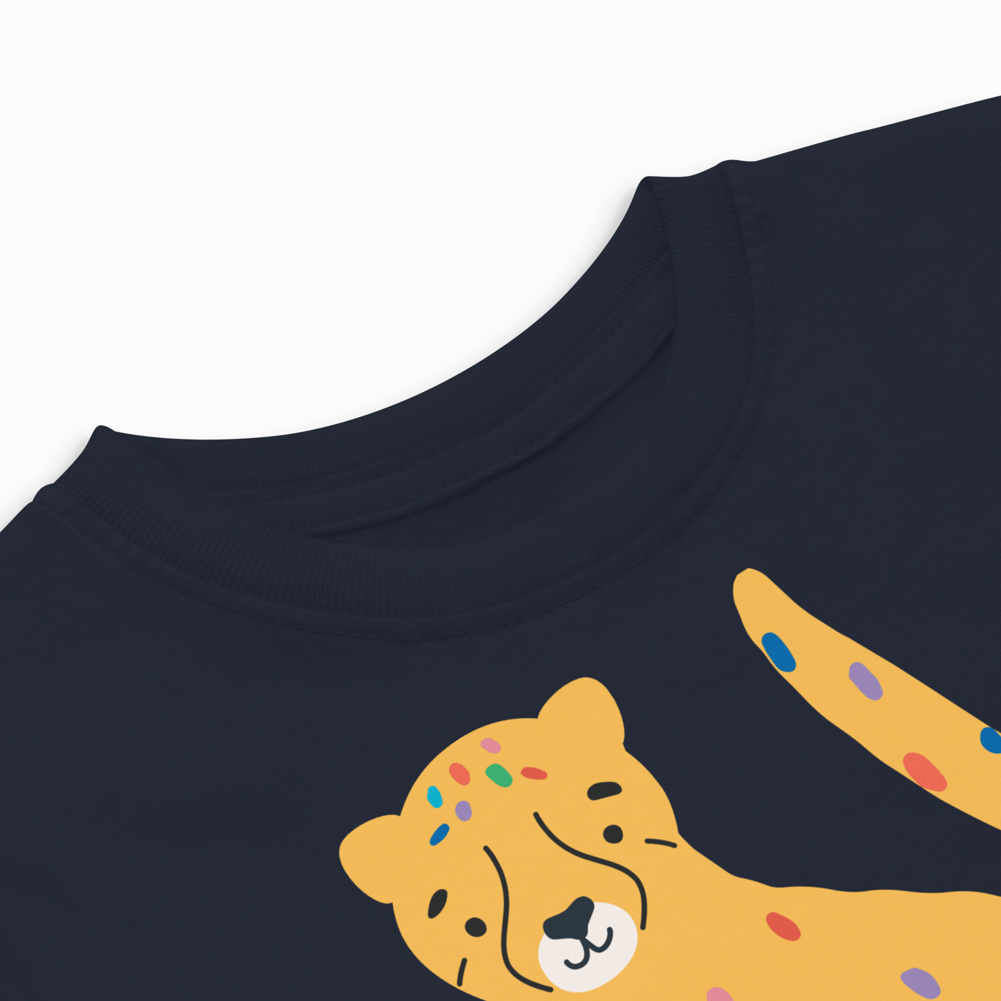 Let your toddler step into the world with bold, confident energy in our Colorful Cheetah t-shirt. This playful design features a smiling cheetah covered in vibrant rainbow spots, inspiring self-expression and curiosity from the very first wear. Soft, breathable fabric keeps them comfortable during every adventure, while the cheerful colors make it a favorite for preschool, playdates, and beyond. This tee adds a pop of personality to any outfit.