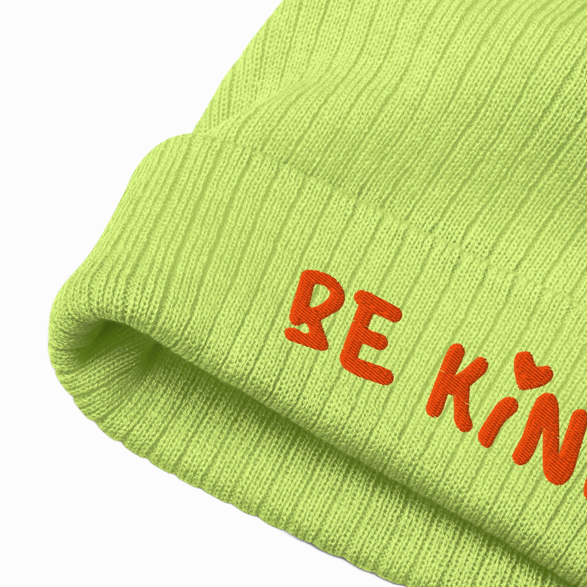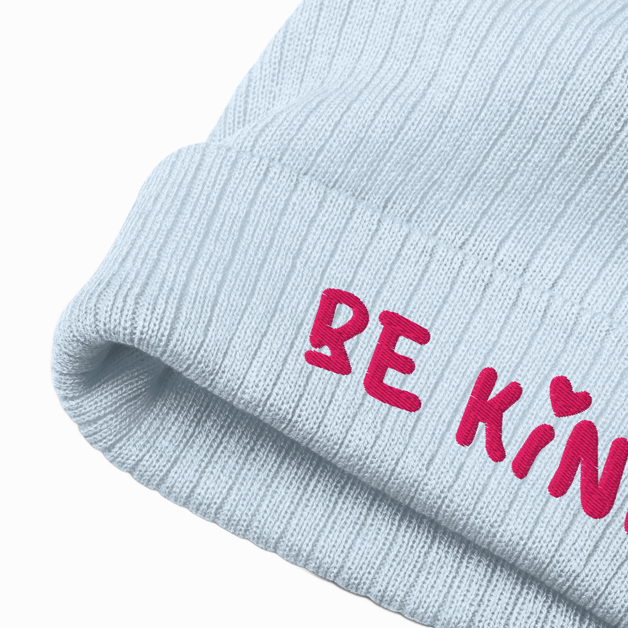 - Cuffed design with embroidered Be Kind detail