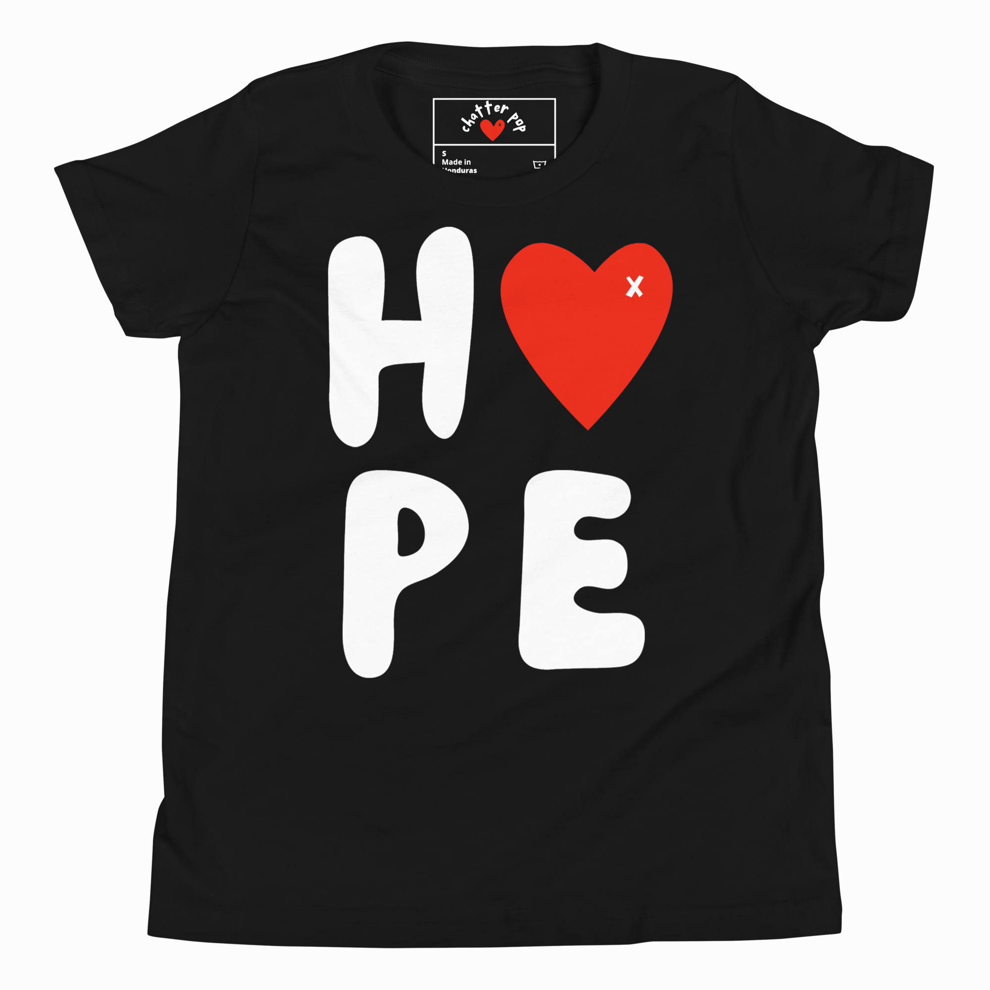 Wear your hope loud and big-hearted. Our HOPE tee swaps the "O" for a Chatter Pop™ signature heart, turning a simple word into a bold reminder that love and hope belong everywhere, from strollers to playgrounds to coffee runs. Made in comfy cotton for babies, kids and grown-ups who believe in bright days.