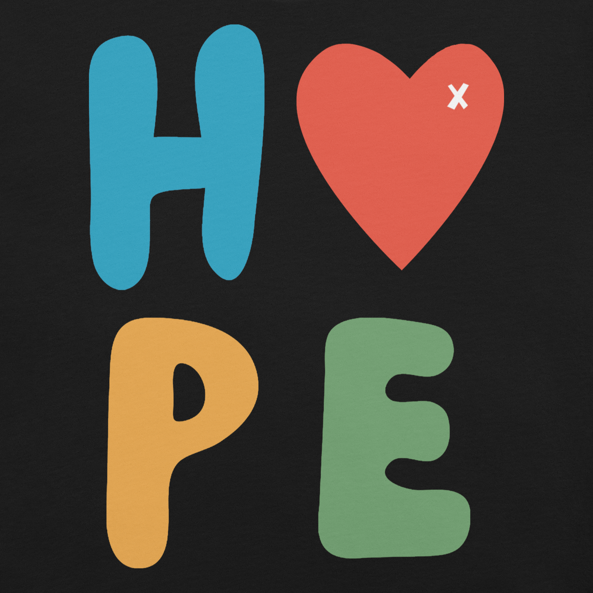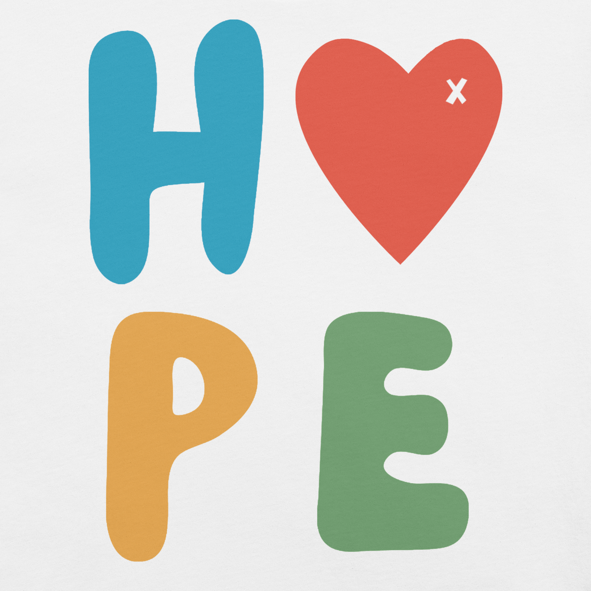- Bold HOPE graphic with heart-as-the-"O" for standout style